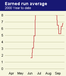 2000 Season Tim Belcher has been very resilient throughout his career. Now 39 years of age, he contemplated retirement during his rehab from offseason elbow surgery last year. While he showed down the stretch that he still had something left in the tank, his days as a workhorse may be over. Last year marked the first time since his rookie season that he didn't amass at least 132 innings.
